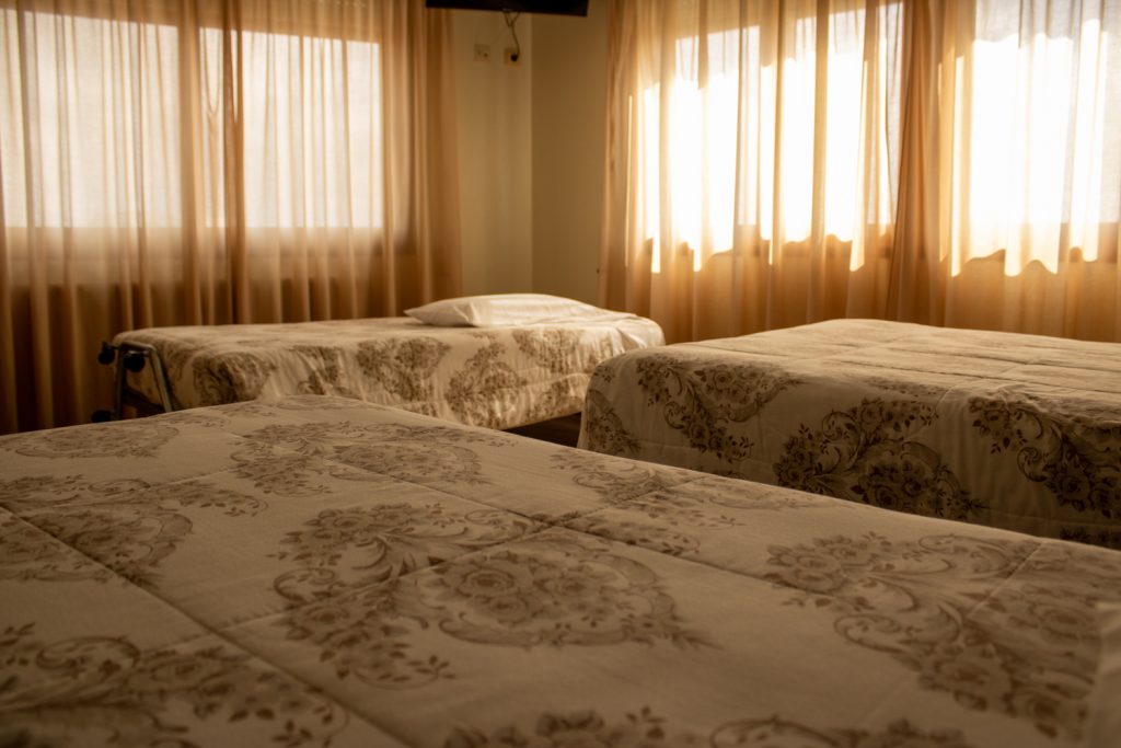 Esta habitación de 16 m2 cuenta con baño privado y tres camas.